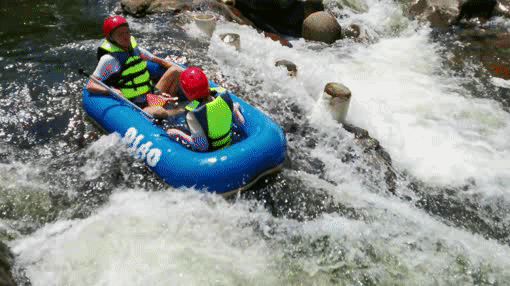 急流险滩、浪花飞溅中谁又能不湿身呢?城市生活带来的压力在这里被清风和流水带走,尖叫和笑声才是属于漂PIAO的。